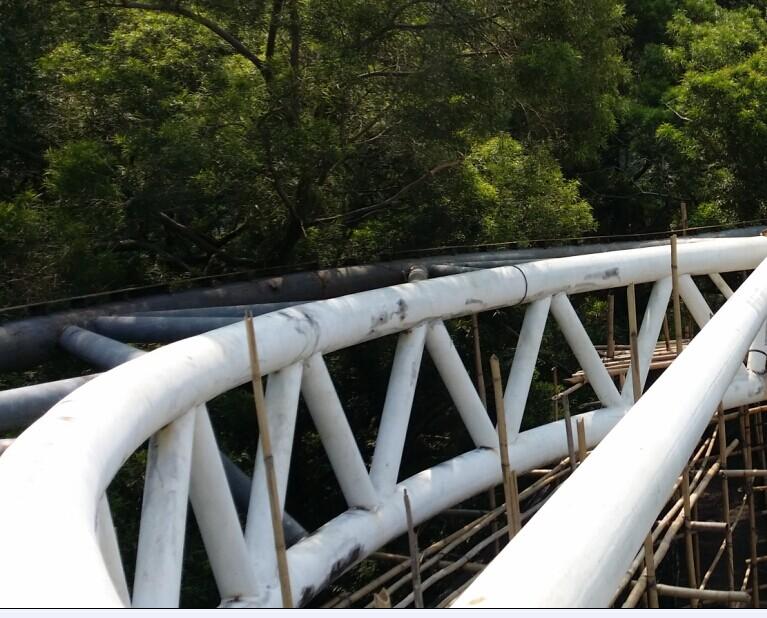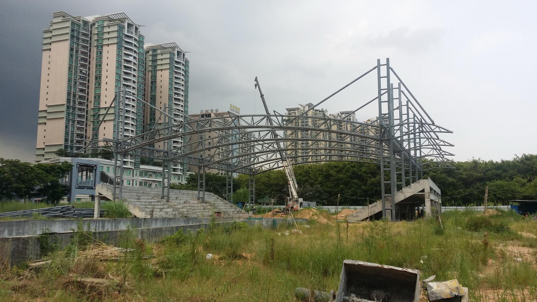 广州黄埔体育中心网球场膜结构雨棚张拉膜3800M2,第一阶段钢结构施工完毕。