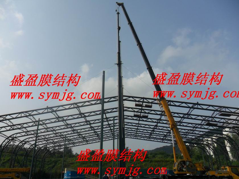 黄木岗网球中心钢结构部分安装完工膜进场