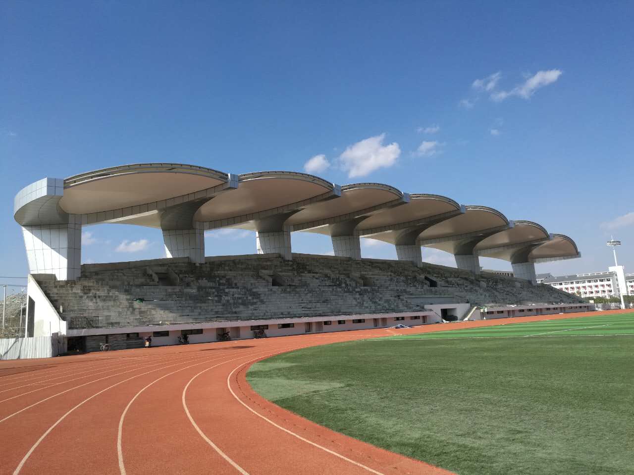 贵州民族大学体育场看台膜结构施工验收完成