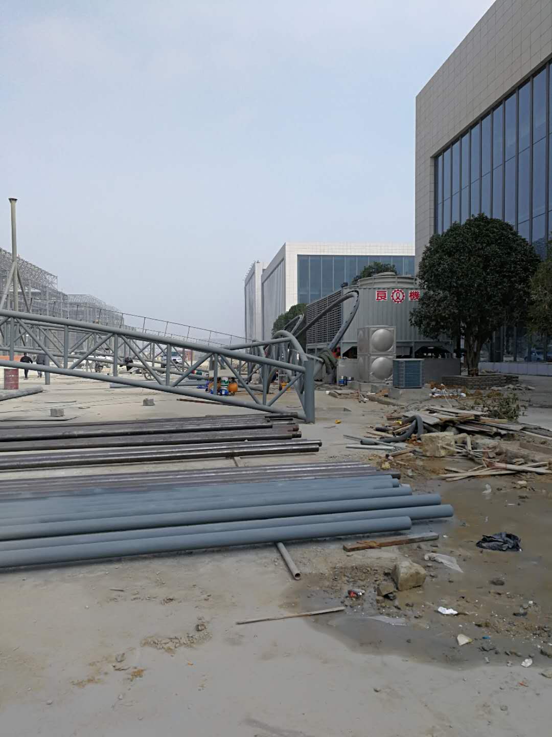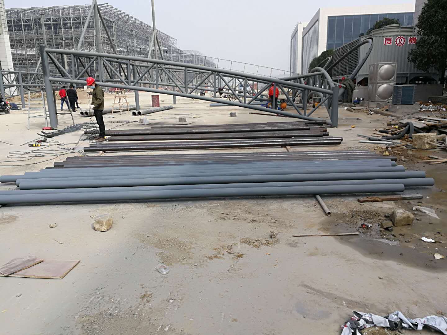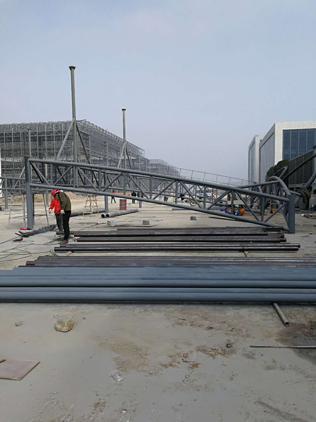 贵州省安顺市生态园区收费站膜结构工程现场制作施工中